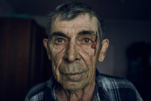 An injured elderly man looks on following a Russian air strike on May 14, 2024 near Kharkiv that injured at least 21 people, including three children. (Vlada Liberova/Libkos/Getty Images)