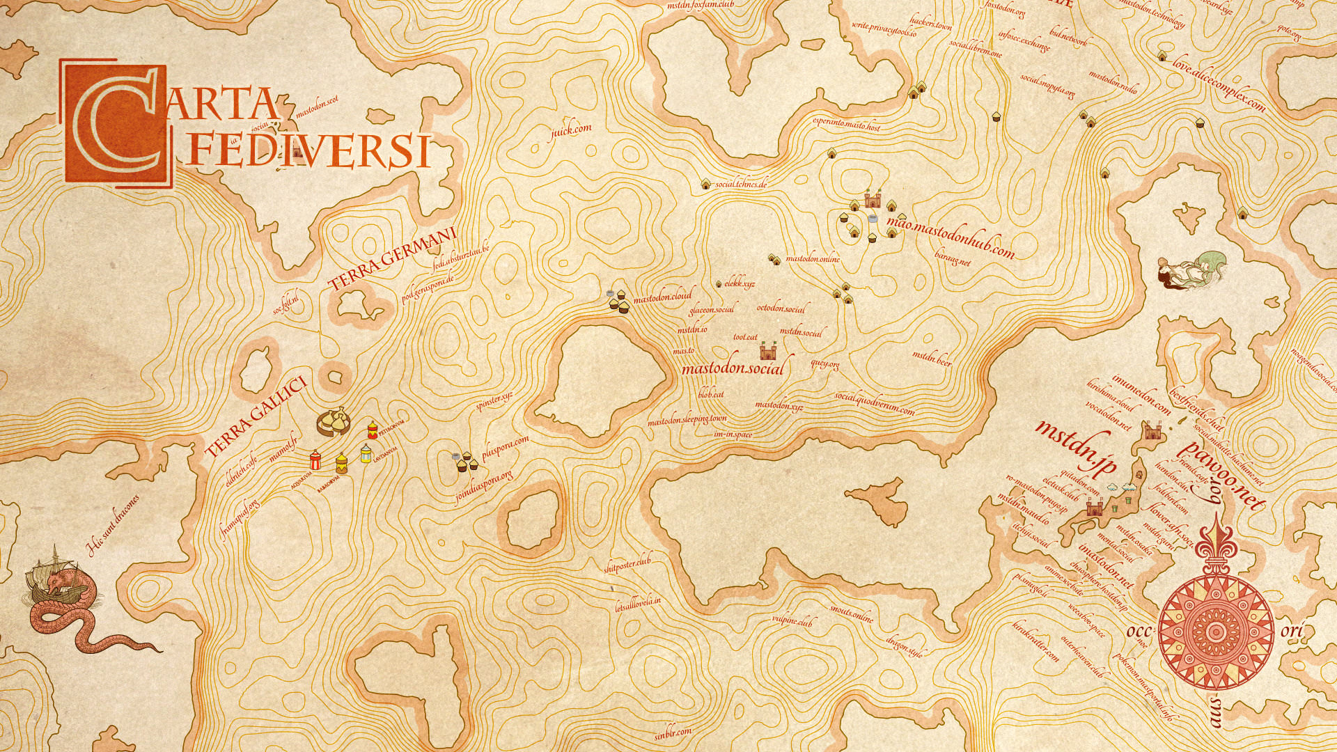 封面:由thor@pl.thj.no製作的中世紀風fediverse地圖