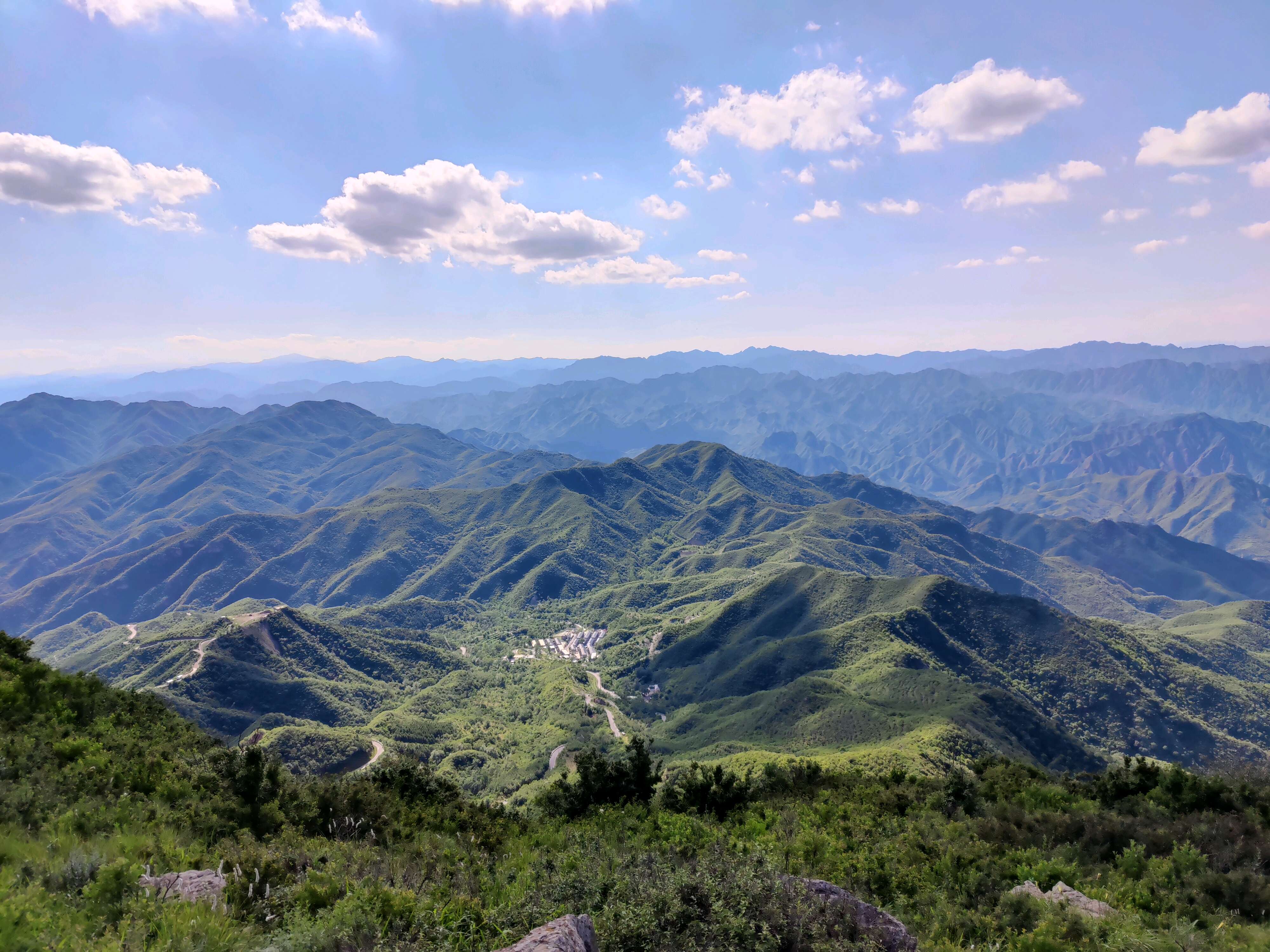 因为上次跟着一个比较坑的轨迹走了一条比较偏的路,这次出灵官殿以后是一条之前没走过的新路。沿着景区的石块路下到某村,买了第二次水,路过了平西情报联络站。