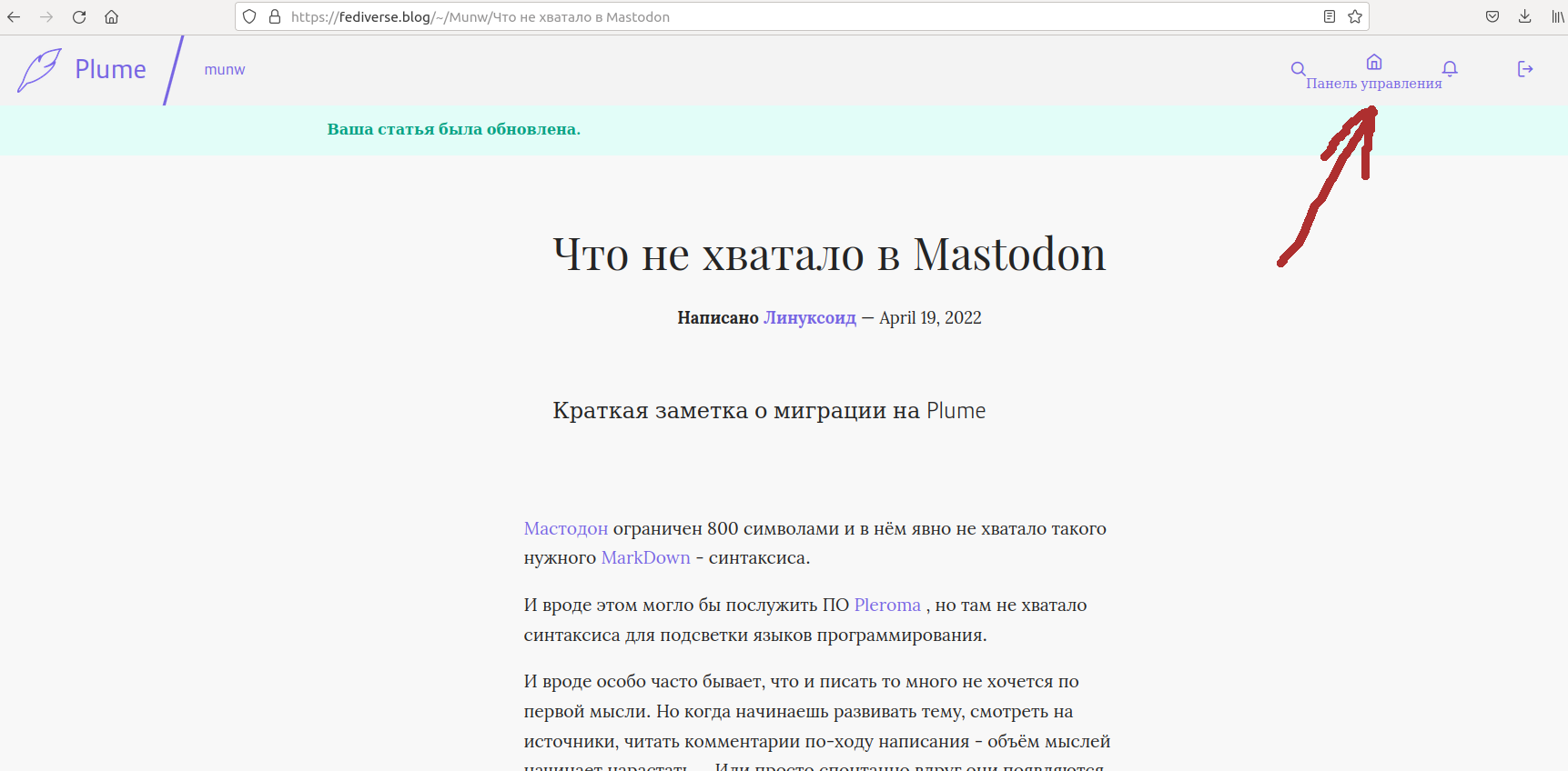 Что объединяет Plume с блоггерскими платформы и его же выгодно отличает от других федивёрс-платформ - это наличие панели управления: