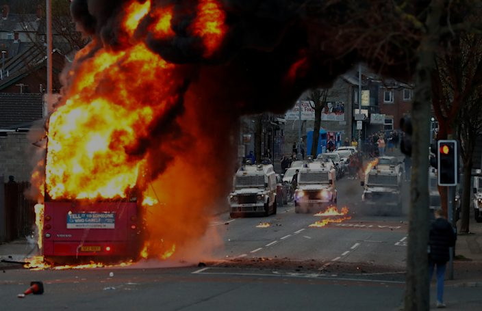 Northern Ireland was plunged into crisis after violence escalated at the intersection between loyalist and nationalist communities in the Shankill and Springfield areas, with a petrol bomb attack on a bus driver who was steering clear of protests and missiles hurled over a “peace wall”.